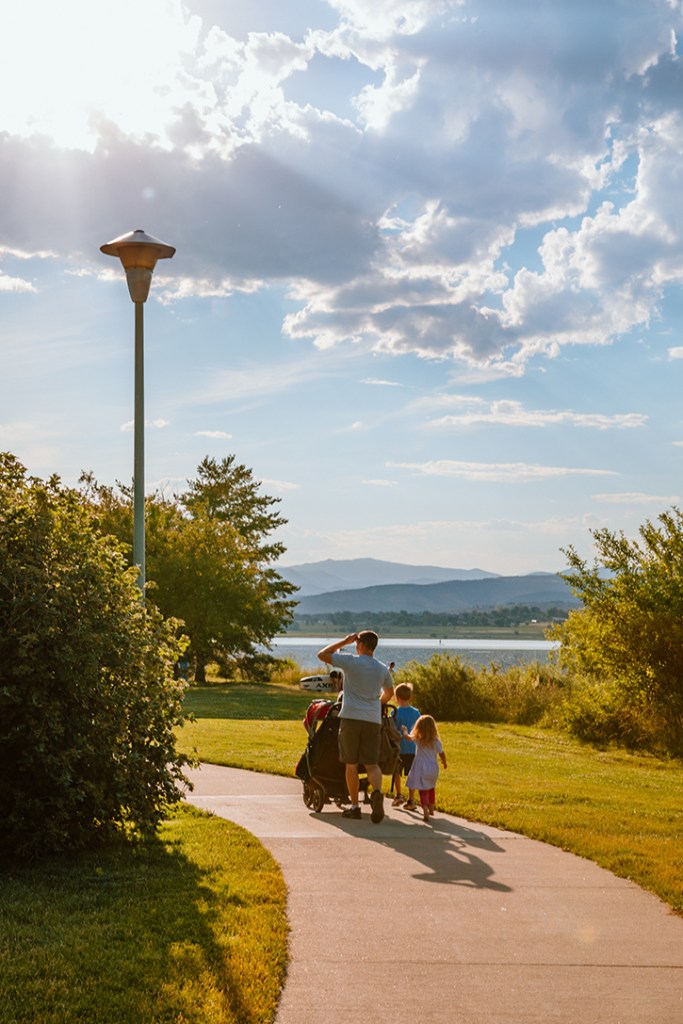 This beautiful lake located in Longmont has a great view of Longs Peak. And that magic hour near the end of a long day! Plenty of picnic tables along the lake for long hours of fun. There are volleyball spots and of course, the main attraction here is for paddleboarding. There is no swimming allowed, but that doesn’t stop us from getting our toes wet on a hot summer day.