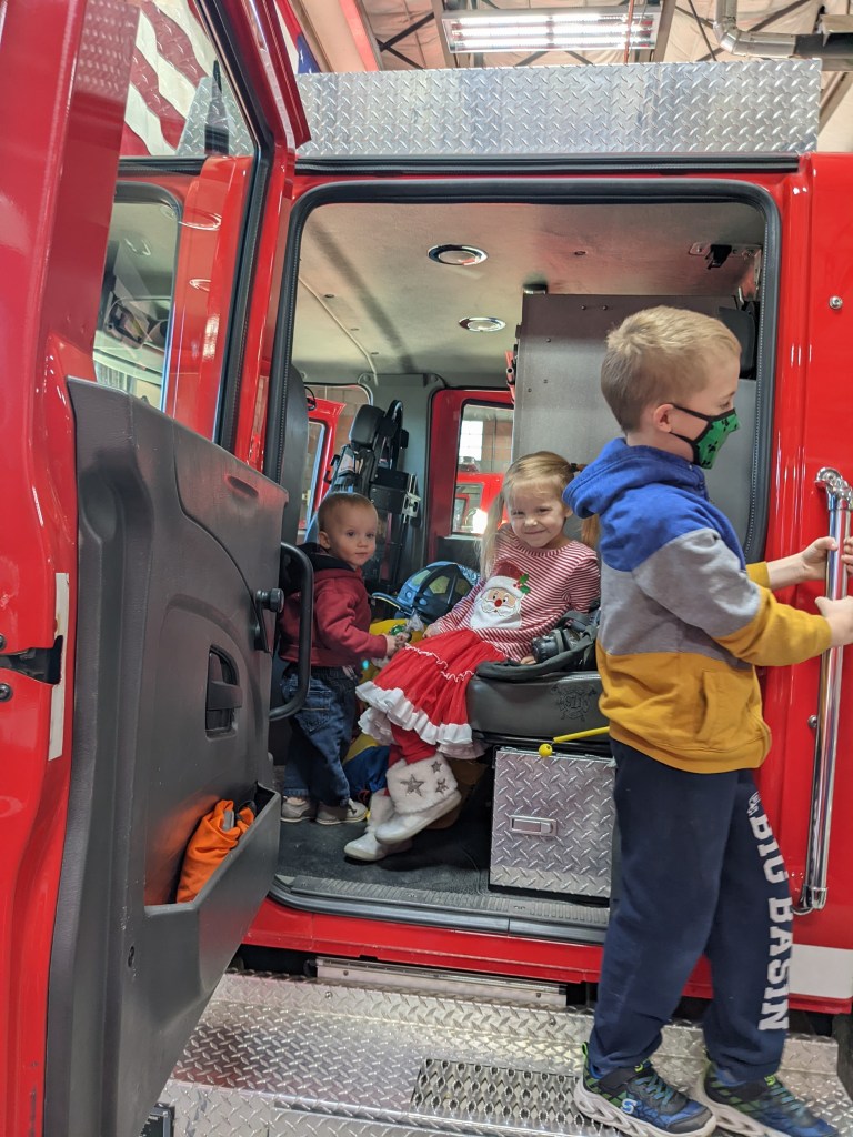 Last year we were able to go for a little visit with Santa which they do once a year. Little goodies, a chat with Santa, and climbing and exploring in the big firetruck. And a great opportunity to show your support for the fire department!