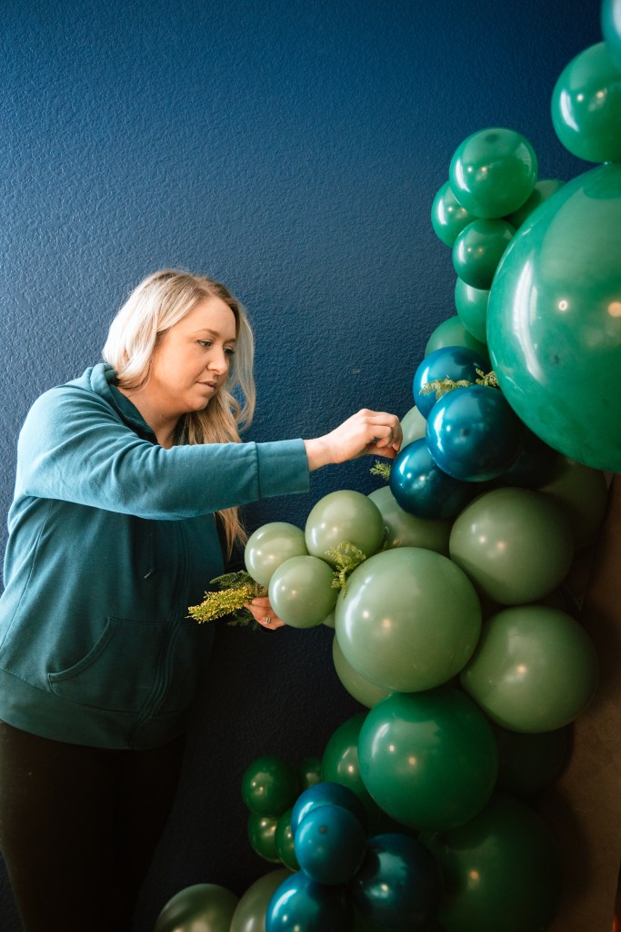 - Kelsey came with all the balloons ready to hang and I enjoyed watching the setup come together.