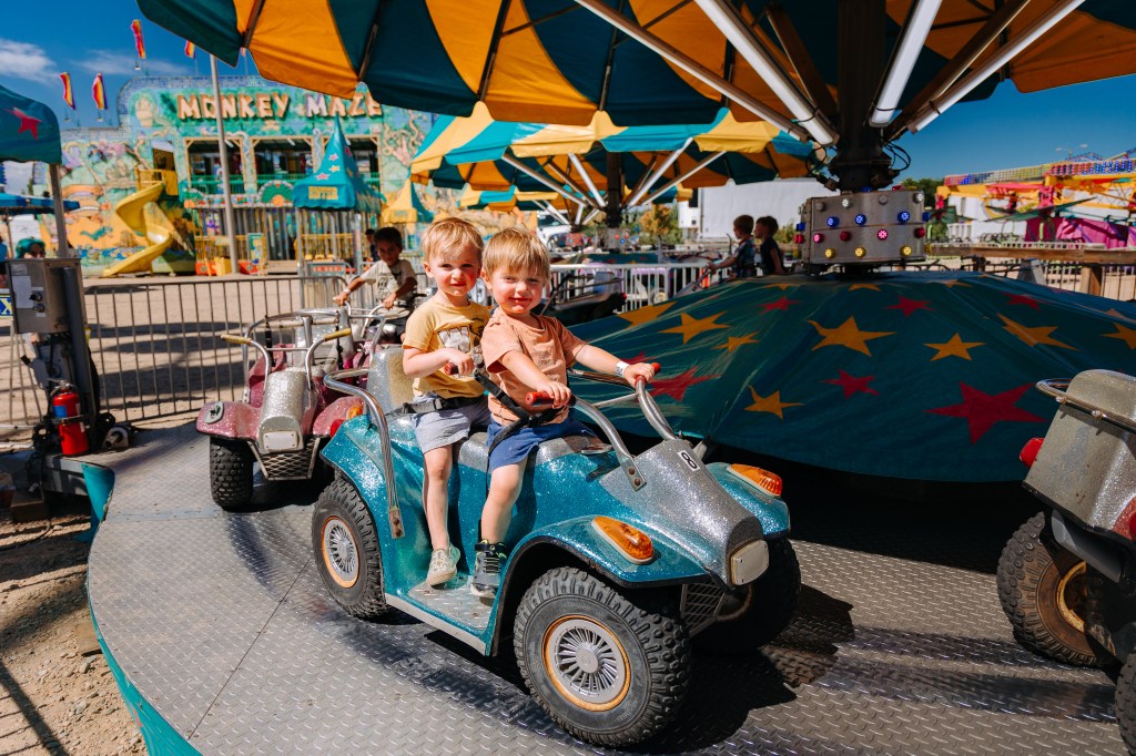 Guess who wanted to ride the 4-wheeler ride again and again ang again and again. We appreciated they were shaded.