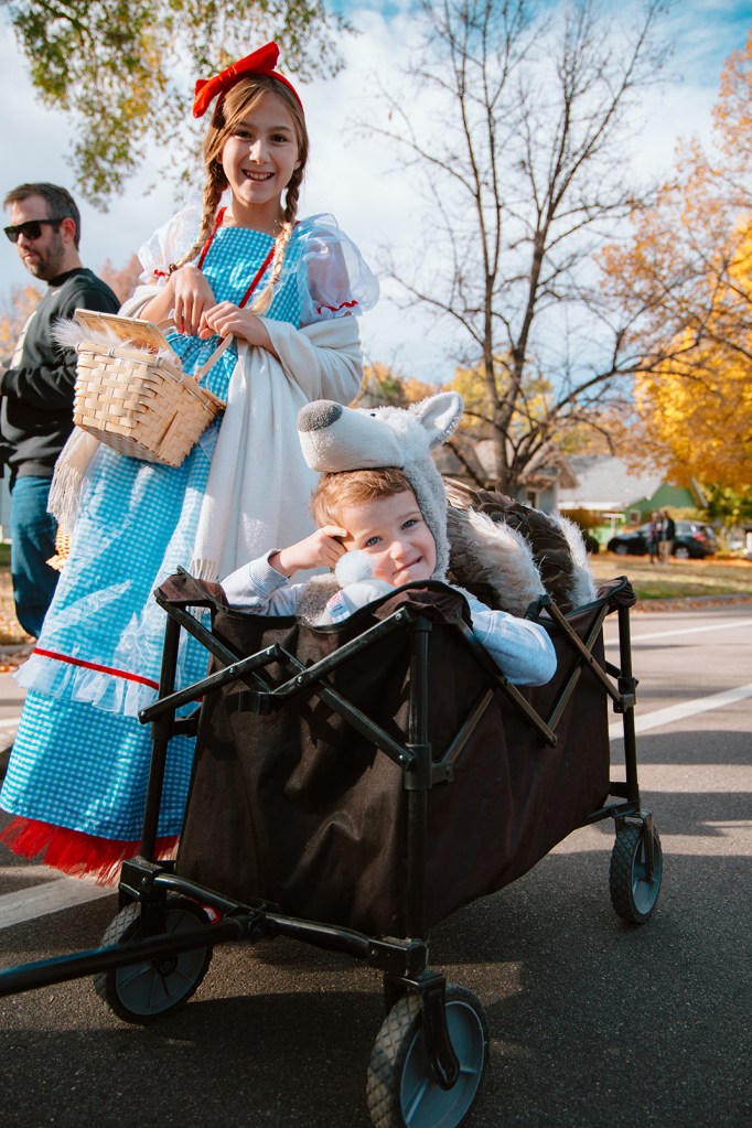 We lined up with our family next to Roosevelt Park about 9:45 am, and then parade started at 10am. We bumped into bumble bee, Centennial State Ballet, Beetle Juice, Moana and SO many other fun characters. I love how creative folks get decorating their wagons and strollers as part of their ensemble and it is a lot of fun.